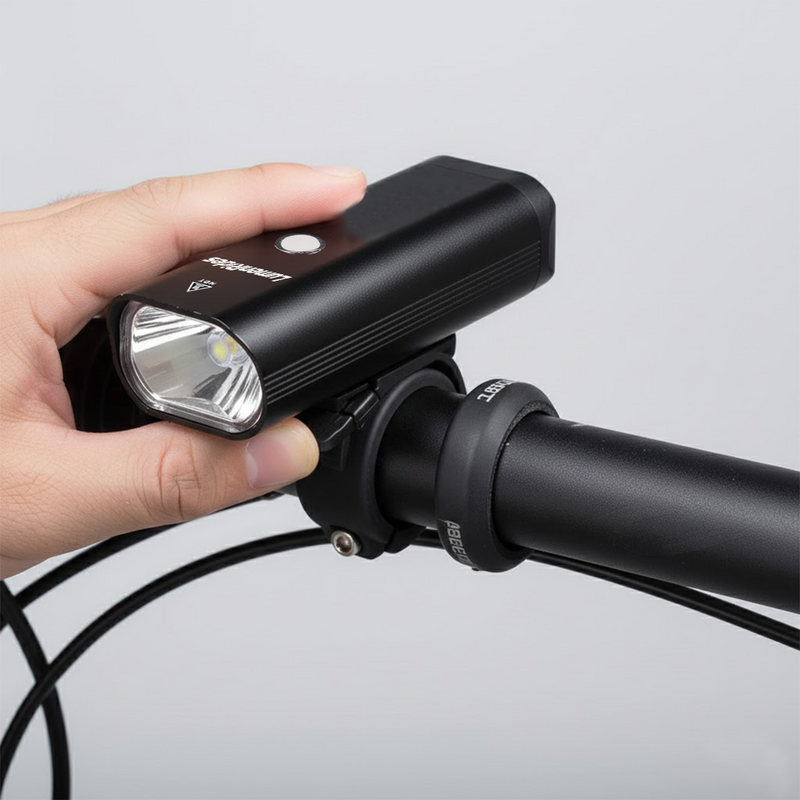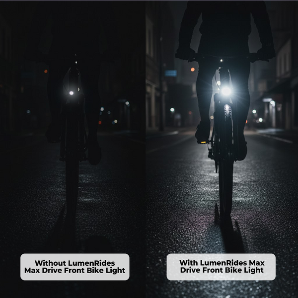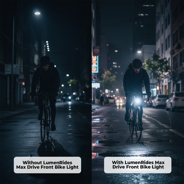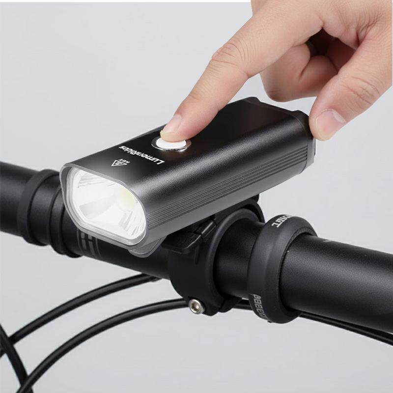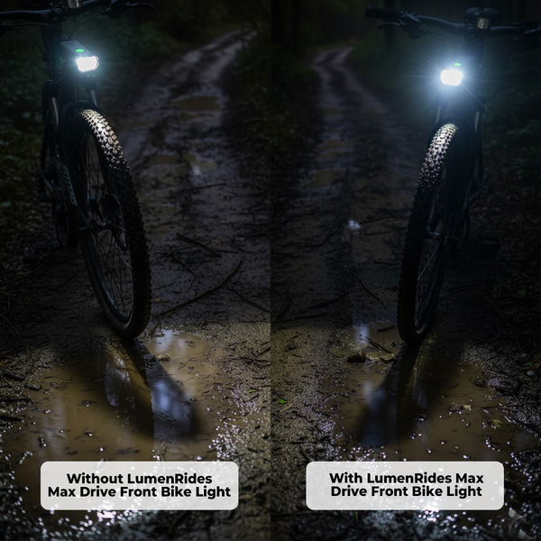 Inside the box, you’ll find the LumenRides Max Drive Front Bike Light, a durable handlebar mount with an adjustable strap, and a user guide to get you started right away. The light features an integrated USB-C charging port, so you can easily power up and hit the road in minutes.